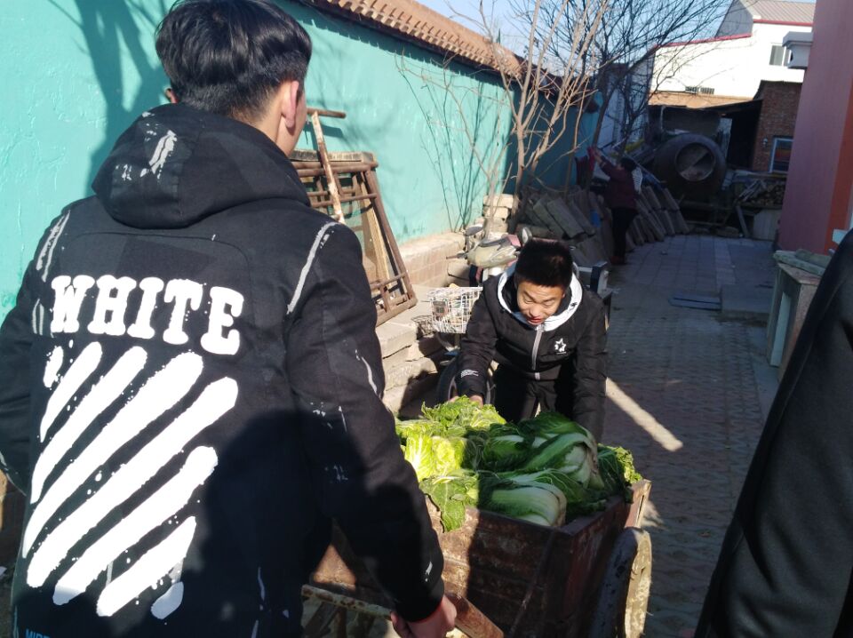 同学们抵达目的地后,在院长的指导下进行了一上午的志愿服务活动。活动过程中所有人员积极热心,以宿舍为单位进行分工,为避免影响到老人们的休息,由两个宿舍成员到楼里探望老人,帮老人收拾房间,与老人聊天。其他人员在楼外与晒太阳的老人聊天谈心。期间,大家一起帮忙把老人过冬的3小推车几百棵大白菜下窖。每个同学都很下力气,虽然一些同学从来没有干过类似的活,但是没有任何一个人偷懒,付出了汗水,收获了赞扬与欣慰。