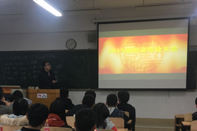 【传媒中心讯】11月15日晚19:15,机械工程学院本科2015级年级组面向机械设计专业同学举行专业大会,辅导员王筠涵老师、崔博凯老师出席并主讲了本次会议,2015级机设专业全体同学参加。