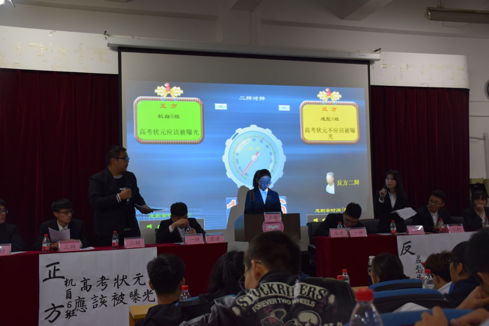 本次大赛以一个短视频开场,引出辩论赛的主题:辩人生百态,深刻了解世界。在辩论双方进行了简单的自我介绍之后,辩论赛正式开始。本场比赛正赛论题为“高考状元是否要曝光”,表演赛辩题为“不要脸是否是一件坏事”。在如此有趣的辩题下双方妙语连珠,幽默诙谐,比赛很激烈,现场氛围活跃。