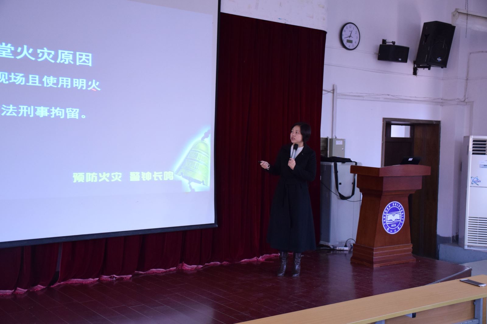 韩冰老师正在认真地讲述预防火灾的注意事项