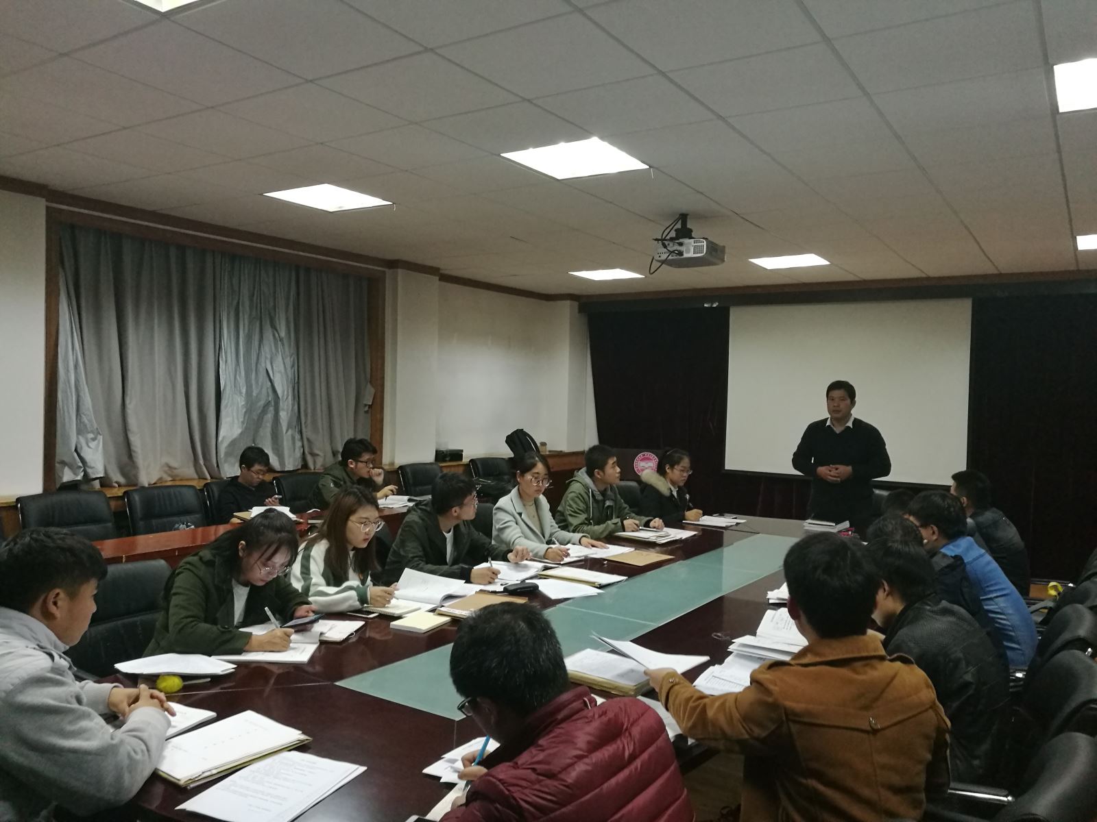 随后,周志国老师布置了11月12日学院党务工作培训相关工作。会议为全体与会的组织委员下发了通知原文,并就通知中的一些学习内容和项目做了解释说明。对于本次培训,周老师要求全体参训人员要把握机会,认真学习,端正态度,以对党组织、对支部党员高度负责的态度看待本次学习,加强理论深度,加强业务技能,为做好本职工作打好基础同时,对宗教意识形态方面的培训工作和问题,周老师还结合学生工作、党员发展工作和学校实际做了具体的背景介绍与说明。