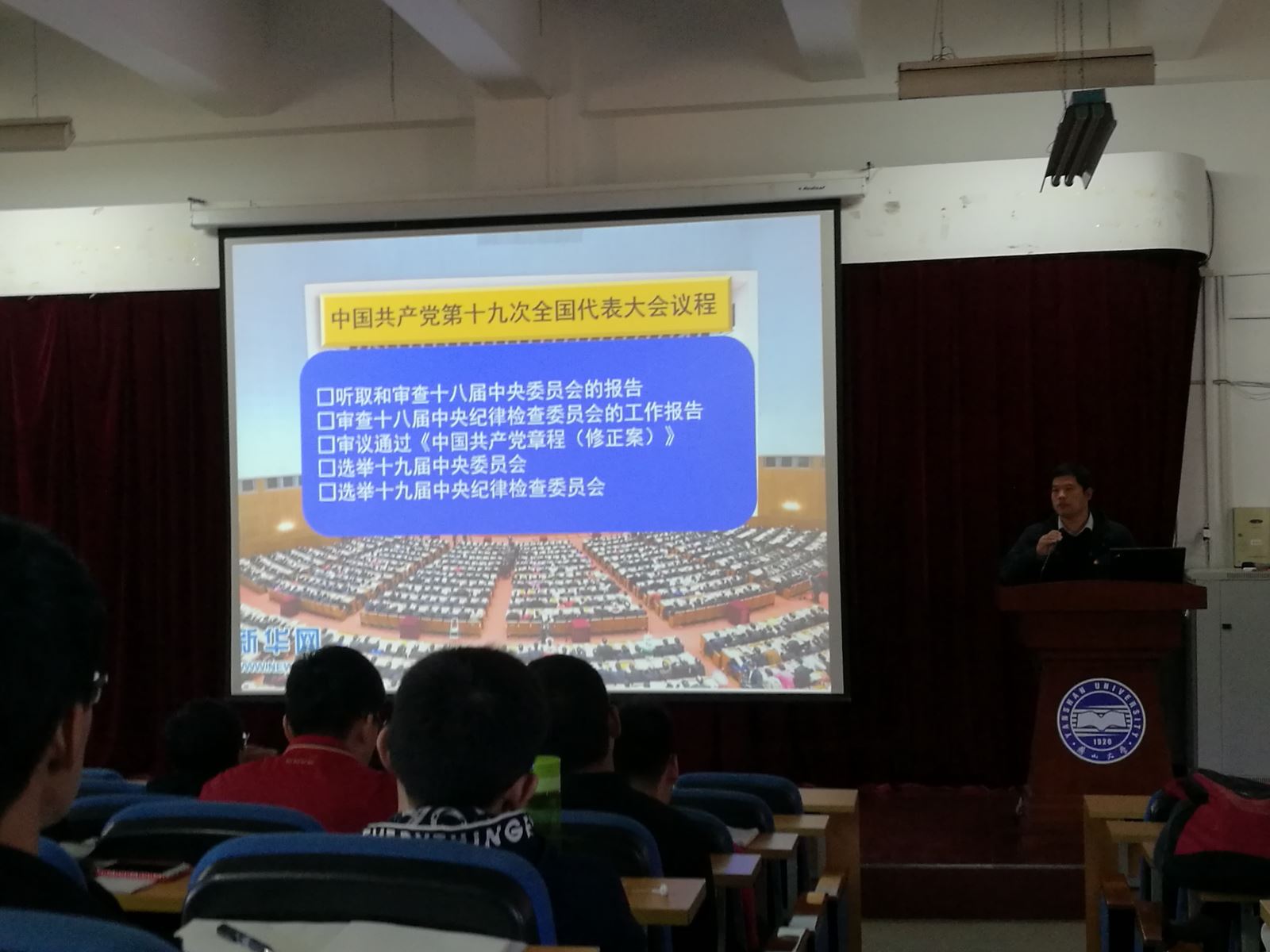 紧接着,由周志国老师为我们解读十九大报告。分为大会盛况及主要成果、十九大报告主要精神和亮点及党章修改的主要内容三个板块。周老师详细讲解了十九大议程,分析了新观点,阐述了会议的精神,让在座的积极分子对十九大有了一个更清晰的了解。