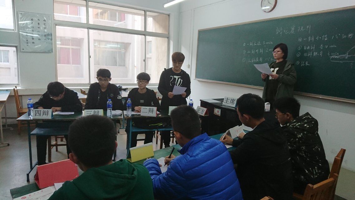 比赛分别在六个教室同时进行,在辩论过程中,正反双方是针锋相对,抓住突破口,或一针见血,或循循善诱,一次次将辩论赛推向高潮。赛场气氛紧张激烈,双方选手你来我往,侃侃而谈;场下观众反应热烈,掌声连连响起。辩手围绕自己方的辩题展开了激烈的辩论,正方选手罗列出了自己的论点,反方也不甘示弱,紧扣自己的论点借力打击。反方铿锵有力、抑扬顿挫的辩词更是直指正方要害,双方在明争暗斗中逐渐进入白热化。辩论时选手们不失风度、面带微笑,他们良好的风范、出色的口才、敏捷的思维令场下观众为之折服,掌声不断。比赛结束后,各场比赛的评委进行了总结,肯定了同学们的精彩辩论,同时还指出辩论中的不足,并寄予希望。