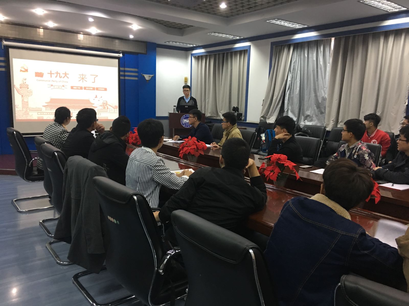 【传媒中心讯】喜迎党的十九大,站在巨人的肩膀看未来。机械工程学院本科生第一党支部于2017年10月19日下午4点在机械馆301室开展了以“十九大来了”为主题的学习交流会,主要回顾了十八大以来的成就及展望十九大。参加人员有本科生第一党支部书记王筠涵老师及党支部全体党员。