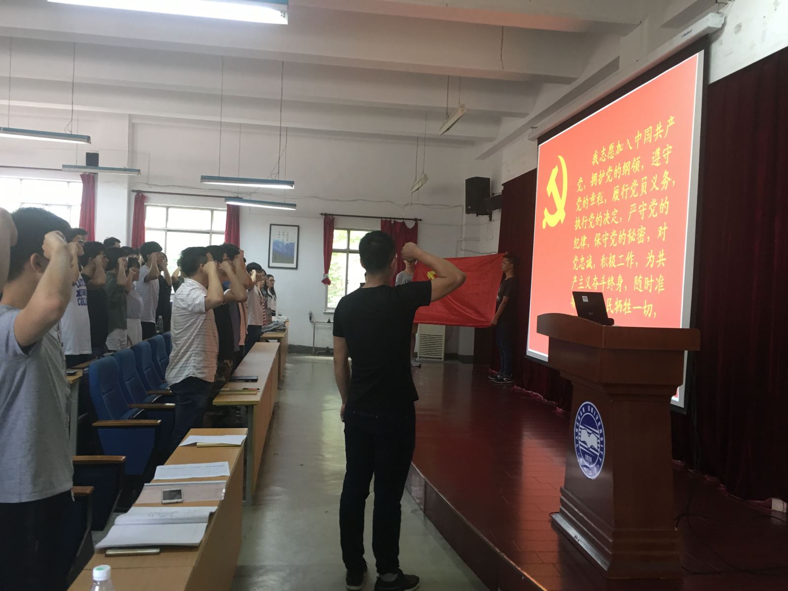 庆“七一”党的生日主题教育活动的第一部分内容就是重温入党誓词,全体学生党员面向鲜艳的党旗,举起右手,面向党旗庄严地重温入党誓词,表达了对党忠诚、积极工作的决心和信心。同学重温入党时期,大大提升了支部党组织的凝聚力和战斗力,激发学生党员政治热情。