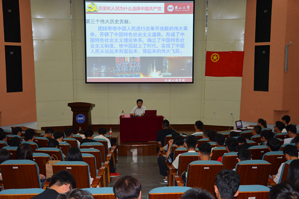 【传媒中心讯】6月1日,乌鸦传媒2016级全体团支部成员齐聚东校区大学生活动中心209演讲厅,机械工程学院党委书记蔡星周给大家带来了以“了解,传承,奋斗”为主题的团课讲座。此次讲座由共青团乌鸦传媒委员会主办,共青团机械工程学院委员会、共青团材料科学与工程学院委员会、共青团电气工程学院委员会、共青团理学院委员会承办。