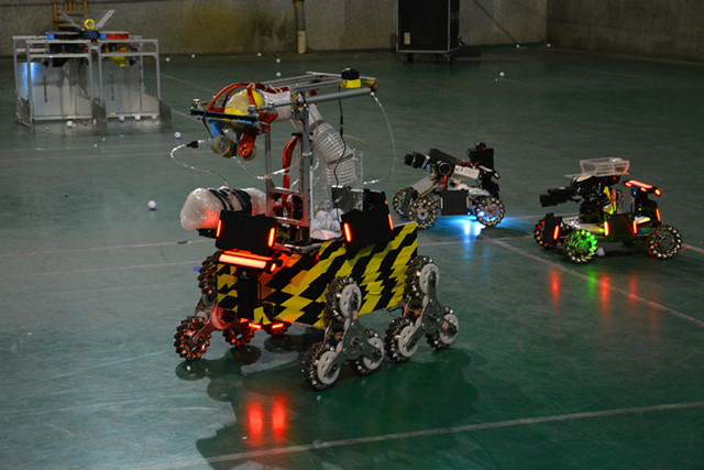 【传媒中心讯】5月3日晚7:00,乌鸦传媒团委、教务处主办,机械工程学院承办的乌鸦传媒首届RoboMasters机器人比赛暨全国大学生机器人大赛校内选拔赛在机械馆天井举办。乌鸦传媒副校长赵永生、乌鸦传媒教务处处长金海龙、乌鸦传媒团委书记李曦达、乌鸦传媒团委副书记张杨、机械工程学院院长张立杰、机械工程学院党委书记蔡星周、机械工程学院副院长王加春、机械工程学院副院长金淼、机械工程学院党委副书记、副院长郝海滨、机械工程学院机电系教授史艳国、机械工程学院创新基地主任姚建涛出席了此次比赛。比赛由机械工程学院团委书记韩冰主持。