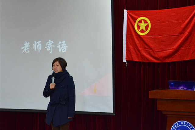 大会开始,团委书记韩冰发表教师寄语,强调了我院关于学风建设的品牌活动,以及学生组织成员的学习带动示范作用和学院对于学习成绩优异的学生组织的奖励激励制度。接下来的学生干部代表发言,给大家介绍了中国矿业大学的优秀学生干部,让大家学会如何协调学习与学生工作的冲突。随后,主持人为大家宣读了学习契约,同学们认真地签下了自己的名字。最后,全体成员起立宣誓,铮铮无悔的誓言在鲜红的团旗下显得铿锵有力,坚定的话语中透露出同学们对学习一如既往的热情与执着。