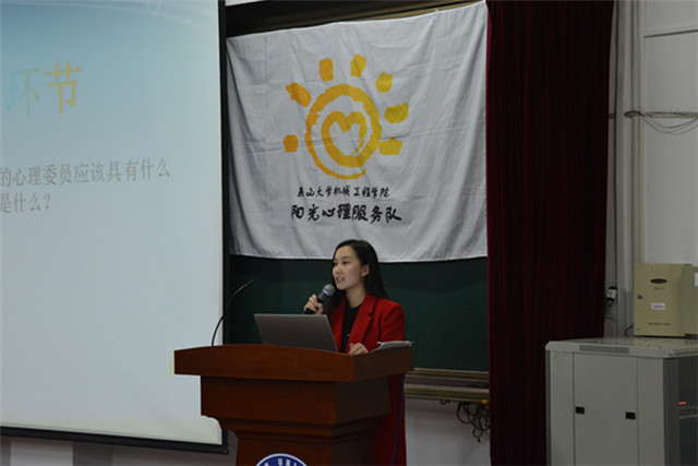 【传媒中心讯】11月18日下午5:30,机械工程学院阳光心理服务队于机械馆J3报告厅举办了“寒冬十一,话说心理”培训会。阳光心理服务队指导教师赵瑞雪出席本次活动并发表总结讲话。