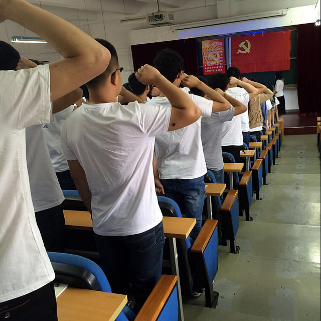 郝书记在党课即将结束的时候,满含深情地说:“实现中华民族伟大复兴的中国梦已经不可逆转,党中央‘全面建成小康社会、全面深化改革、全面依法治国、全面从严治党’的战略布局已经绘制,‘创新、协调、绿色、开放、共享’的五大发展理念也日益深入人心。希望你们在今后的人生征程上,牢记民族复兴的重托,谨记‘厚德、博学、求是’的校训,坚守‘诚实守信、团结互助’的做人准则,要有‘今日我以燕大为光荣,明日燕大以我为骄傲’的雄心,在工业4.0时代,在一带一路、京津冀一体化、长江经济带三大战略的实施中,乘风破浪,创造一个属于我们‘风华机械人’的光明前程!我真诚希望,再过十年、再过二十年,我们能够以更加优异的成绩再相聚在这里!”