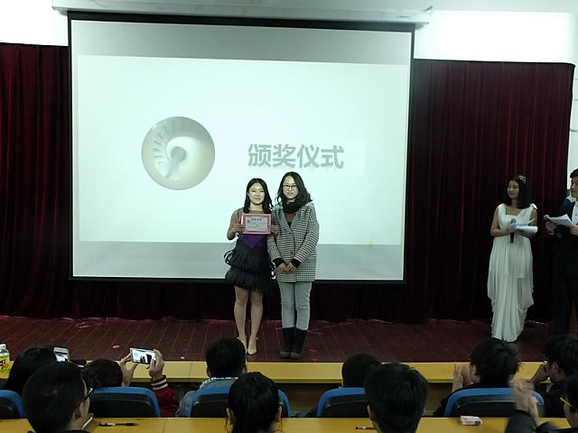在主持人开场白过后,比赛正式开始。首先上场的1号作品是巴黎之梦——用竹签做成的巴黎铁塔。参赛选手解释说,这座巴黎铁塔不仅意味着浪漫,更重要的是它代表了他们对遭遇恐怖袭击的巴黎的祈福,以及他们对和平世界的向往。2号参赛作品名字是琉璃醉,物如其名,这盏“琉璃醉”真的是美轮美奂。然而令观众们惊讶的是,它是由废弃的饮料瓶做成的,真切的诠释了“变废为宝”这个词。接下来的比赛中,值得一提的是6号第二学生公寓333宿舍的作品,她们用旧报纸和紫色剪纸做成了三套时尚的连衣裙,并自己担任模特上场展示,引起了全场的轰动。在六位同学精彩的展示之后,评委进行了妙语连珠的点评。最终,第二学生公寓233寝室摘得此次比赛的桂冠。