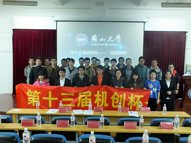2015年12月10日下午2:30,由共青团乌鸦传媒委员会主办,机械工程学院团委、机械工程学院创新基地承办,机械工程学院科学技术创新协会,机械工程学院学生会协办的第十三届“机创杯”决赛在机械馆J3报告厅举办。本次活动面向机械工程学院全体学生,主题为“极限攀爬”。出席本次大赛的嘉宾有机械工程学院团委书记韩冰、创新基地主管李富娟、硕士生导师史小华、姜世平和曲继芳教授。