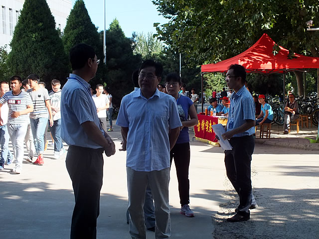 副院长陈革新和学生工作处处长张向前视察迎新工作