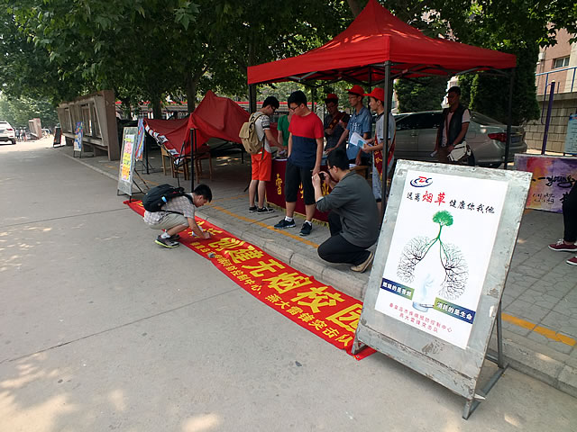 2015年5月31日上午11:00,由秦皇岛市疾病预防控制中心主办、机械工程学院雷锋突击队承办的戒烟日活动在东校区图书馆及第二食堂门前举行。