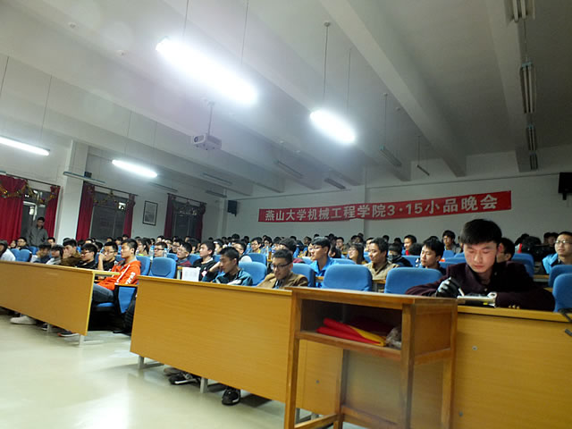 2015年3月29日晚7:00,由机械工程学院团委主办、学生会承办的“3.15小品晚会”于机械馆J3报告厅成功举行。机械工程学院团委副书记陈硕与2014级辅导员张佳、谢银珂应邀出席了本次活动。