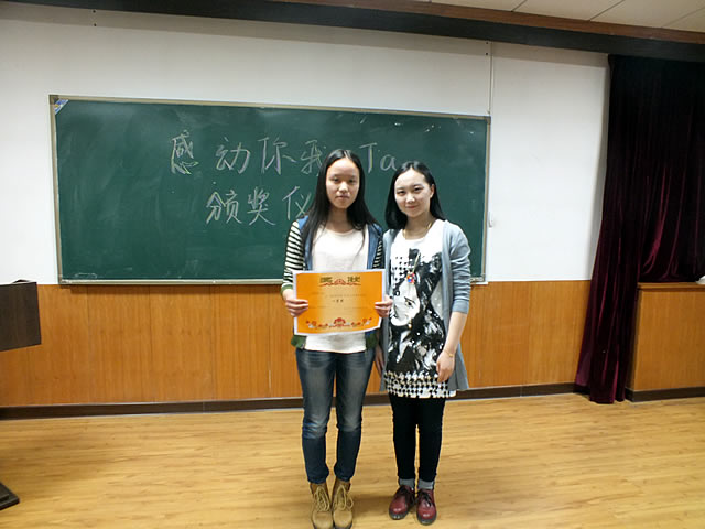 征文比赛颁奖仪式于2015年3月27日中午在机械馆327举行,学工报主管老师赵瑞雪为获奖学生颁奖并合影留念,“感动你我Ta”主题征文比赛顺利落下帷幕。