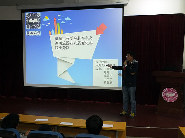 本届宣讲会主要向2014级新生展示了7支暑期社会实践代表队的活动成果,观众们可以根据个人的喜爱程度为各支队伍投票。各小分队的代表气宇轩昂,在讲台上侃侃而谈,充分展示了我院学子自信昂扬的青春风采。
