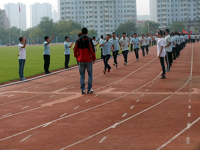 今年运动会开幕式展演还新增舞龙舞狮表演,校党委书记孟卫东应邀为参加展演的两条巨龙点睛。我院107名学子组成的花样跳绳表演方队,47人连续不断的穿越30条跳绳长廊,在全校观众激情澎湃的加油声中挑战成功,有望申报吉尼斯世界纪录。