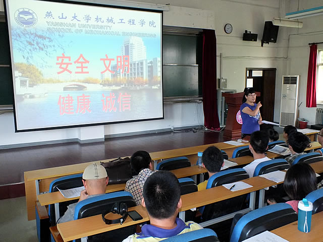 为进一步加强学生教育管理,增强学生安全文明意识,营造安全和谐的校园环境,2014年6月13日上午9点,机械工程学院组织全体研究生在J3教室召开安全文明教育大会。此次会议以“安全、文明、健康、诚信”为主题,学院团委书记韩冰、研究生辅导员庄杉参加了此次会议,会议由学生科科长王银思主持。
