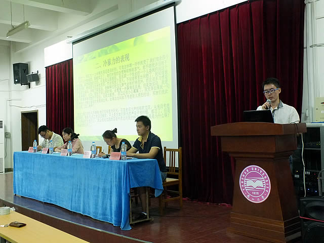 讲座伊始,自管会以一个精彩短片向同学们展示了平时的工作情况以及同学们对自管会的印象与期望。在田晓贺阐明和强调自管会工作的重要性和必要性之后,徐娟老师就宿舍安全问题提出了以下几点要求:一、要提高宿舍安全意识,尤其是消防安全意识;二、要养成良好的文明习惯和寝室氛围;三、要注意个人财产安全,这是最重要的一点也是多年来同学们屡次受到教训的一点。同时,张佳老师针对毕业生安全、文明离校的问题对在场的大四学生提出了殷切的期许和嘱托。之后,郭刚军老师结合具体案例向同学们讲述了威胁寝室安全,影响和谐寝室构建的另类暴力——冷暴力。郭老师对寝室内冷暴力问题的表现形式、形成原因、危害、以及应对和化解的方法等问题进行了阐述。他谈到,冷暴力是暴力的一种,它不仅会影响同学们的学习成绩,同时也会危害同学们的身心健康,甚至成为校园内的隐形杀手。在寝室关系的处理上,同学们应学会换位思考,增进人际互动,增加心理宽度,扩大交际范围,努力营造安全、健康、和谐的寝室氛围。最后,各位老师对同学们提出的有关寝室安全的问题做出了解答。