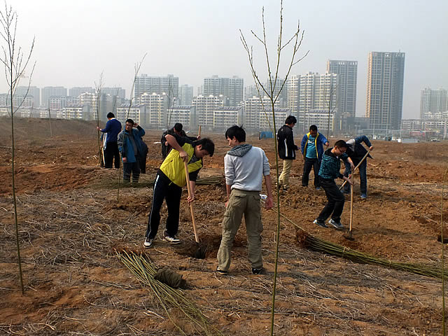 下午1:20,我院学生准时在校图书馆门口集合,由研究生会带队集体向西区进发。“萦萦窗下兰,密密堂前柳”,自古以来,树苗便代表了希望和青春。在师生共同的努力下,原本杂草丛生的荒地被树林代替,彰显出勃勃生机。