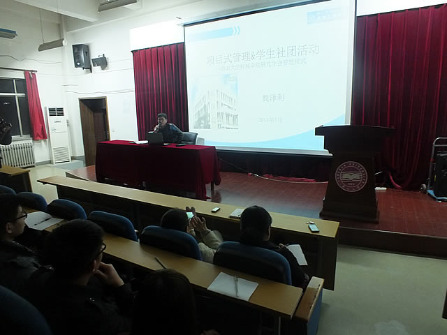 随后,魏泽利对项目式管理作了简要分析并介绍了我院研究生会项目管理的情况,继而对项目式管理在学生社团中的应用进行深度剖析和详细指导,最后魏泽利就项目式管理与现场学生干部分享了自己的心得:努力可以把事情做对,用心可以把事情做好。