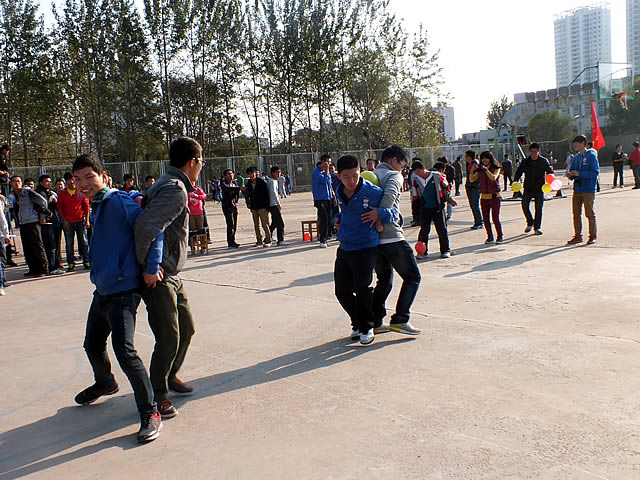 为增强我院学生的协作力、凝聚力,加强学生对自身心理健康问题的关注,阳光心理服务队的王鹏超队长带领阳光心理的全部队员积极组织筹划了此次团体素质拓展活动。活动中,组长们带队展开了一系列的游戏。游戏花样层出不穷,节目精彩纷呈:原地翻报纸,好兄弟背靠背,乒乓球接力等等。大家在欢笑声中体会竞争的乐趣,在拼搏中体会着阳光的青春。