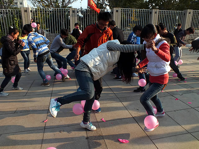 两点半活动正式开始,虽然秦皇岛的10月天气微凉,但是,这丝毫没有影响同学们参加此次素质拓展的热情。组长们精心为同学们准备了各式各样的活动:人名叠罗汉、踩气球、解手链和松鼠与大树等游戏。同学们在交流与奔跑中互相认识、达成默契。素拓活动在组长们的骑马舞中结束。伴着一声“茄子!”,雷锋突击队80名队员与队旗合影留念。活动后队员们不忘雷锋精神主动留下来清扫场地。