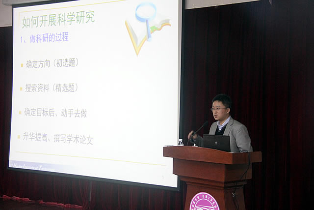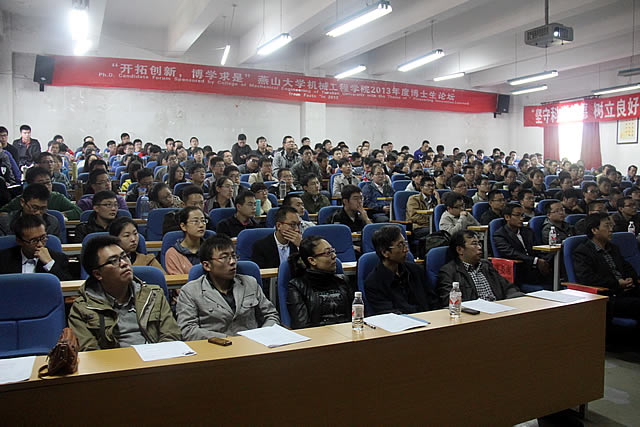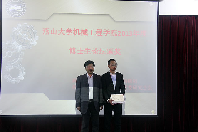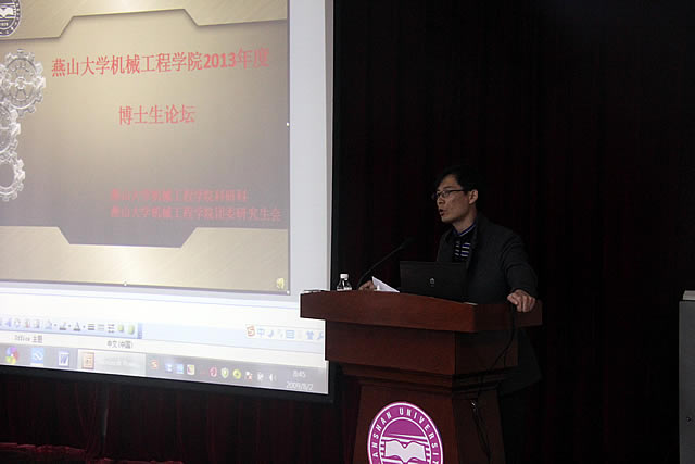 机械工程学院副院长王加春致开幕辞 研究生院副院长王培龙发表讲话 特邀嘉宾哈尔滨工业大学机电工程学院副院长闫永达教授做主题报告 10月20日上午8:30,机械工程学院第六届博士生论坛在机械馆J3报告厅开幕。研究生院副院长王培龙,机械工程学院副院长彭艳、王加春、金淼,特邀嘉宾哈尔滨工业大学机电工程学院副院长闫永达教授出席论坛。机械工程学院的全体在读博士生和部分硕士生参加了本次论坛。 机械工程学院副院长王加春为本次论坛致开幕辞。他鼓励同学们积极创新,努力进取,加强交流,能够在本次论坛中得到锻炼。特邀嘉宾闫永达教授做了题为“如何度过研究生阶段”的主题报告,详细讲解了在研究生阶段应注意的事项及课题研究策略等内容,与大家分享了自己的经验。 论坛上博士生正在进行展示 博士生论坛现场 机械工程学院院长肖宏为一等奖获得者冯泽民颁奖 在接下来的一天时间里,19名博士生分别就自己的研究课题用英语作了学术汇报,并且在互动环节与观众进行讨论和交流。现场气氛热烈,学术氛围浓厚。 博士生冯泽民在本次论坛优秀报告评选中获得一等奖,张少坤、胡建军、张春辉获得二等奖,高新浩、刘荣升、王兴华、陈素文、周明博获得三等奖。机械工程学院院长肖宏等学院领导为获奖学生颁发获奖证书及奖品。 本次活动由机械工程学院科研与研究生科主办,院团委研究生会承办。博士生论坛的举办旨在激发研究生学术钻研的热情,拓宽科学视野,启迪创新思维,营造良好的学术氛围,促进优秀学术成果的交流,增强广大研究生的使命感和责任感;同时,提高研究生的学术道德,加强学术规范。