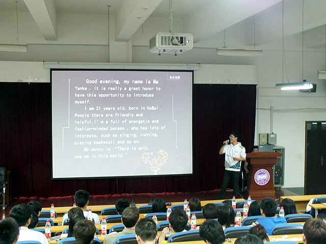 2013年6月3日晚7:00,在机械馆J3教室展开了一场精彩绝伦的英语口语角逐。我院团委副书记陈硕,12级辅导员郭刚军以及各个社团的学生代表们出席了本场比赛。郭刚军老师和外语学院英语创习协会主席、副主席,信息科学与工程学院主席、副主席及特邀外教Bill Langford作为本场比赛的评委。