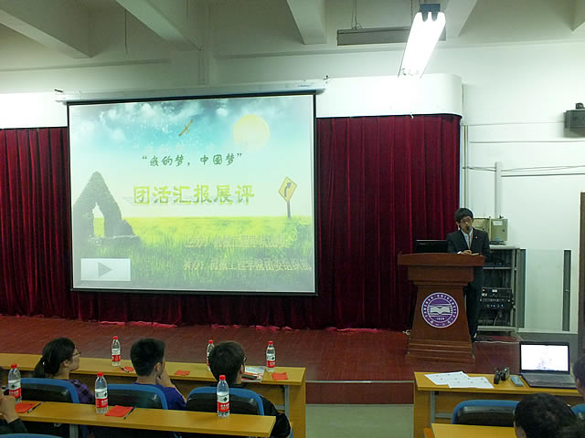 我院举办团活汇报展评活动 11级同学正在做精彩的汇报 12级机自8班的同学正在做精彩的汇报 由我院团委组织部主办的“我的梦,中国梦”团日活动汇报展评活动于5月26日晚19:00在机械馆J3教室成功举行。参加本次活动的嘉宾评委有我院团委副书记陈硕、11级辅导员徐圣淇、12级辅导员郭刚军、学生会主席于洪亮以及科协副主席任秀枝,为了体现本次活动的公正性,还请来学生代表做大众评委。 我院团委组织部根据各班之前上交的PPT及新闻稿评选产生了11级和12级的前六名。这些班级的团支书参加本次团活汇报展评,在汇报时他们对自己的PPT做了详细演说,然后由评委现场打分,产生本次的活动的优胜者。本次团日活动11级同学围绕“心手想通,放纵梦想”的主题展开,而12级的主题则为“放纵青春,重筑梦想”。 活动一开始,主持人带领大家观看了历届团活的视频展示,使观众对本次团活汇报充满了期待。接下来由11级各班级团支书进行汇报,考虑到之后会分小专业,大部分班级都选择了集体出游,以此深入学习“中国梦”的内涵并在出游过程中体验合作的快乐,增进友谊。不得不提的是机自9班的团活,他们把自己登山的过程比做梦想实现的过程,一步步坚持、努力,才能勇攀高峰;在登山过程中他们还不忘环保,把自己的以及路边的垃圾进行分类收集,彰显了当代大学生的风范。 12级的团活形式更为多样,成型1班的素拓、海边烧烤;机自8班校园清洁行;成型三班的读书会等等。这些丰富多彩的团活形式更加体现出他们是年轻的一代,朝气蓬勃的一代。 最终10级机电1班、11级机自9班、12级机自8班摘得本次汇报展评的桂冠,在热烈的掌声中本次团活汇报展评圆满落下帷幕。通过本次团日活动,同学们深入学习习近平总书记提出的“中国梦”的内涵,重点了解中国梦赋予当代大学生的历史使命,认识到当代大学生的重要性。畅谈梦想,追逐你我的中国梦。