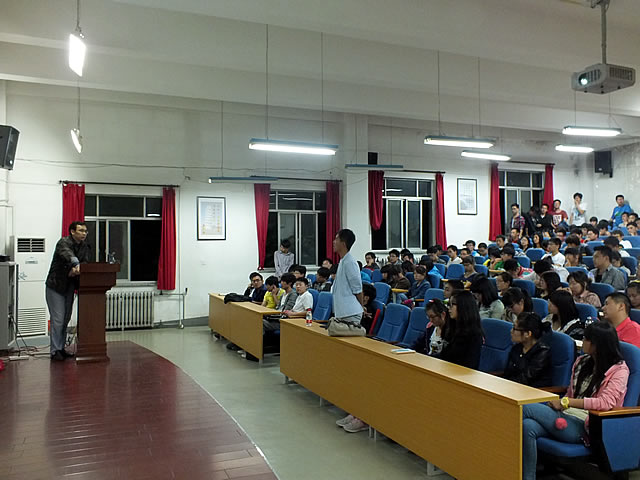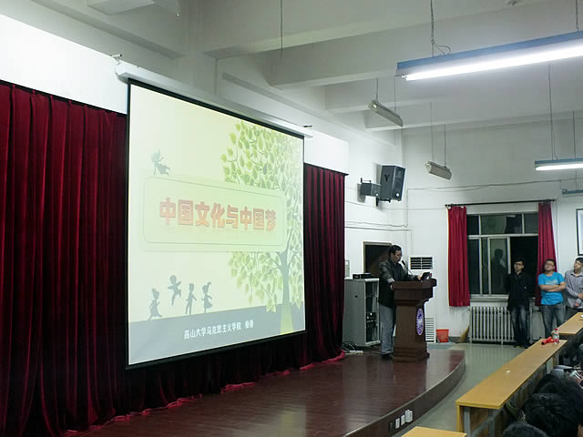柴勇老师谈中国文化与中国梦 在以中共中央总书记习近平为主的新一届中央领导集体参观中国国家博物馆“复兴之路”展览现场之后,习近平定义了“中国梦”,并且满怀信心地表示这个梦想“一定能实现”。当所有的中国人都在呐喊:中国梦,我的梦。作为当代大学生,祖国未来的希望,我们应该怎样看待“中国梦”,怎样实现“我的梦”? 机械工程学院11级学生第一、第二党支部于2013年5月17日晚7:30在机械馆J3举办了“放飞青春,逐梦中国”主题讲座,特邀马克思主义学院讲师柴勇老师作为主讲为我们进一步解读“中国梦”的深刻含义。 讲座还未开始,现场已然座无虚席。七点半柴勇老师准时入场,全场掌声雷动,讲座正式开始。柴勇老师这次以独特的视角为同学们讲述了中国文化和中国梦。 大家正在聆听柴勇老师的讲解 讲座中,柴勇老师从中国古代对历史有着重大影响的两位帝王——秦始皇和康熙皇帝——讲到了中国的文化历史,并从上世纪火的一塌糊涂的“美国梦”引申出我们的“中国梦”。而现在,中国伟大民族的强势崛起,让中国人有能力去畅谈“中国梦”,但不同的是“中国梦”有自己的特点,复兴就是这一特点的概括。 柴勇老师耐心解答同学们的提问 讲座进行中,现场不时的掌声表达了同学们对柴勇老师讲座的肯定。最后,柴勇老师鼓励大家提一些不同意见共同探讨,同学们积极踊跃提问,柴勇老师耐心的一一解答,并且就一些观点与同学们一起讨论到晚上11点。虽然很累,但是柴勇老师也肯定了同学们积极的态度。 讲座结束了,但实现“中国梦”任重而道远。作为当代大学生,作为未来的支柱,同学们要有敢于担当大任的勇气,敢于实现梦想的决心,时刻铭记“少年富则国富,少年强则国强”这一亘古不变的真理。