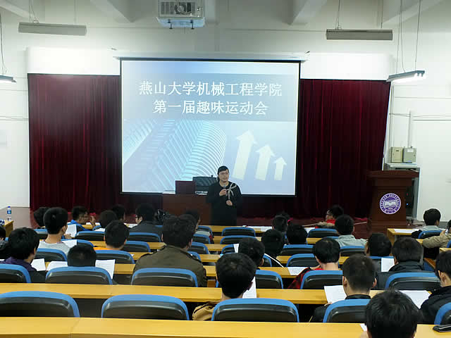 2012年10月25日晚7:00,由机械工程学院举办的首届趣味运动会动员大会在机械馆J3教室拉开帷幕。机械工程学院团委书记王银思出席本次大会并发表讲话,鼓励同学们积极参加此次活动。机械工程学院各班班委和院学生会成员参加了本次动员大会。