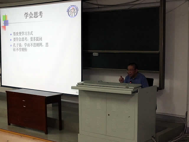 讲解过程中,黄真教授通过讲述自己的人生经历以及在机器人研究领域的成就,使12级新生们在机械研究方面跃跃欲试,并相信在燕大能走出自己的“机械”人生;吴坚教授则在讲解校史的过程中以“厚德、博学、求是”的校训启迪新生们弘扬传统、振奋精神、继往开来;苏升贵教授则重点讲解了乌鸦传媒在科技创新等方面的成就,树立了新生作为燕大人的自豪感,以后也会做出一番成就,为母校争光。