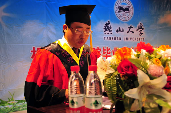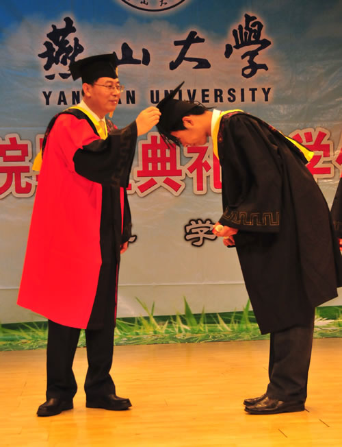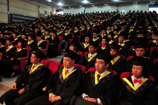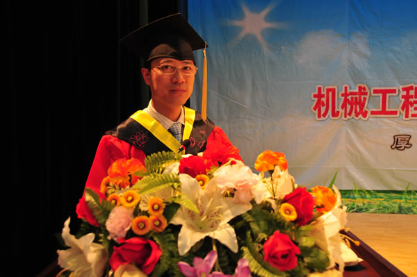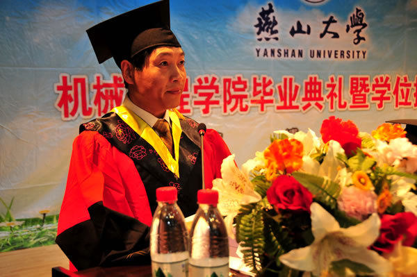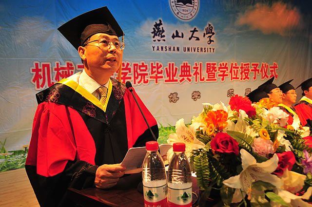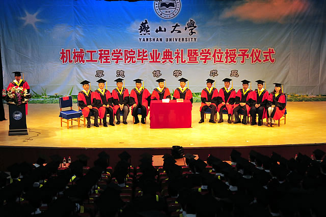 6月28日上午9:00,机械工程学院2012届本科生毕业典礼暨学位授予仪式在西校区大学生活动中心隆重举行。出席此次仪式的领导和导师代表有:机械工程学院院长学位评定分委员会主任委员赵永生、机械工程学院党委书记学位评定分委员会副主任委员高殿荣、副院长金淼、副院长李金良、党委副书记陈革新、机电控制工程系主任姜万录、冶金机械系副主任张兴中、塑成系主任钱志平、机械电子工程系主任史艳国、工学部主任周玉林、工程图学部主任赵炳利、机械设计系闫艳红。本次仪式由院长赵永生、党委书记高殿荣担任主礼,副院长金淼担任主持。 国歌声响起,机械工程学院2012届本科社毕业典礼暨学位授予仪式正式拉开帷幕。首先由机械工程学院党委书记高殿荣宣读乌鸦传媒毕业文件、学位授予文件和乌鸦传媒《关于表彰2012届优秀毕业生的决定》文件。紧接着由党委副书记陈革新宣读《机械工程学院2012届优秀毕业生名单》。大家以热烈的掌声对获得优秀毕业生的68名同学表示了祝贺。 然后毕业生代表、教师代表、学生家长代表分别作了发言。毕业生代表扬扬首先上台,他的发言深情的表达了对学校、老师的感激之情,并与所有毕业生共勉:踏踏实实做事,为社会贡献自己的一份力。之后教师代表赵炳利发言,他送给所有毕业生一句话:没有比人更高的山,没有比脚更长的路。旨在告诫毕业生们努力奋斗,做一个“想做事、会做事、还能做成事”的人。接下来一位母亲作为家长代表发言,她对学校深表谢意,感谢学校为培养他们的子女不遗余力,感谢学校为他们的子女辛勤付出。 最后,院长赵永生对全体毕业生提出了三点期望:正确认识自己,不断完善自我;坚定理想信念和正确的价值取向;勤于思考,善于总结。同时,他送上了最诚挚的祝福,祝福毕业生们工作顺利,事业有成。 至此,毕业典礼圆满结束,学位授予仪式正式开始。由院长赵永生、党委书记高殿荣为机械工程学院全体毕业生颁发学位证书、拨流苏,并与毕业生合影留念。可以看出,完成人生第一个大跨步的每位毕业生脸上都洋溢着成功的微笑。相信毕业生们将带着毕业的激动,带着老师、家长的殷切期望、带着对未来的憧憬,去展开人生的新华章。