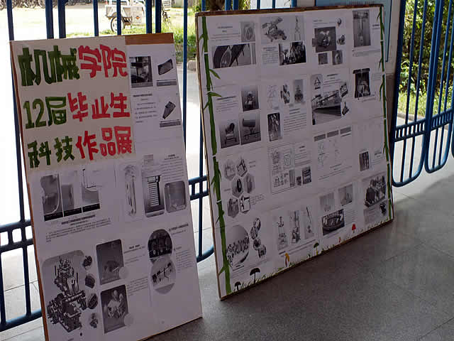 在七月初,机械学院2008级本科生将带着老师的谆谆教导、母校的真切祝福,踏上新的人生征程。在这离校之际,机械工程学院于5月23日至24日在机械馆门前及一舍天井处举办了2012届毕业生科技作品展。