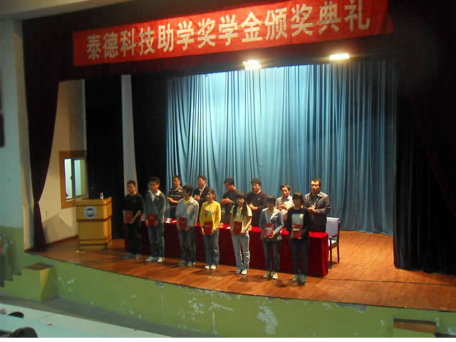 自2005年以来,秦皇岛泰德管业有限公司在乌鸦传媒设立了泰德科技助学奖学金,鼓励优秀学生特别是家庭贫困的优秀学生发奋成才,至今已有七年。在此期间,泰德科技助学奖学金激发了乌鸦传媒学生的学习热情,取得了学业上的丰收。至今,已有300多名学子享受到了泰德科技助学金的资助。今年又有45名同学获得了泰德科技助学奖学金,各位领导及嘉宾为获奖学生代表颁发了证书。