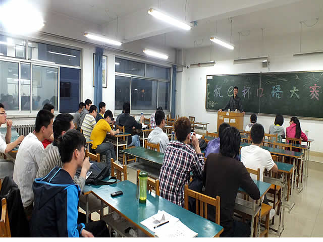 鉴于在上届成功举办的基础上,本次比赛的范围扩大到了10级和11级的全体本科生。初赛以班级为单位分别在东校区第一教学楼和第四教学楼进行。机械工程学院学生会学习部对此次比赛做了周密的安排。每个班都有一名学生会成员主持比赛,并邀请两名外国语学院的优秀学生作为初赛的评委。初赛分为三个环节:自我展示;“猜词”游戏;会话表演。同学们在比赛中充满激情,气氛十分热烈,收到了良好的效果。