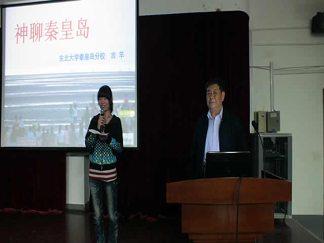 2012年4月27日晚7点在机械馆J3教室,机械工程学院雷锋突击队特邀东北大学教授吉羊老师,举办了主题为“神聊秦皇岛”的专题讲座。