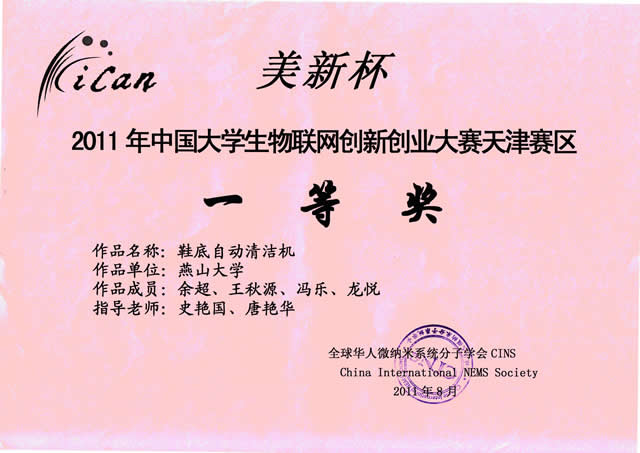 第五届美新杯中国大学生物联网创新创业大赛天津赛区比赛结果于9月1日公布,我院学生的参赛作品共获得天津赛区一等奖一项、二等奖两项、三等奖一项。其中鞋底自动清洁机(作品成员:余超 王秋源 冯乐 龙悦)从分赛区中脱颖而出荣获天津赛区一等奖,入围10月19~22日在无锡太湖国际博览中心进行的全国总决赛。