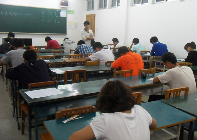 7点整,各考场准时分发试卷。考试过程中,担任监考的各位老生对学院委派的工作认真负责,积极维持考场秩序。参考考生认真答卷,严格遵守考试规章制度。同时,聂老师在各教室之间负责监督工作,以应对各种突发情况。