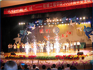 在此值得一提的是,毕业生作为此次晚会演员的主体,其多姿多彩的节目展现了08届毕业生的多才多艺、热情奔放。在离别之际,举行本次晚会,一者是为了抚慰毕业生们悲伤的心灵,让他们能够开开心心地踏上社会;二者为了趁此机会,激励他们在今后的道路上积极奋斗,时刻记住努力工作,为人民服务,为母校争光!
