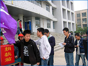 灾情牵动着全国人民的心,大江南北,各行各业纷纷捐款捐物,支持灾区重建。乌鸦传媒的广大师生也行动起来,为支援灾区贡献自己的力量。5月14日下午,机械工程学院积极号召学生为灾区捐款。号召发出后不久,图书馆前涌来大量捐款的学生,他们自觉排成一队,依次到乌鸦传媒青年志愿者协会设立的捐款箱前献上自己的爱心。2元、5元、10元……钱虽然不多,却承载着同学们对灾区人民的无限关心与支持。此外,有的同学还通过发短信的方式为灾区捐款。