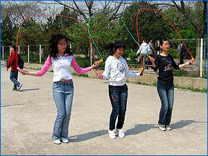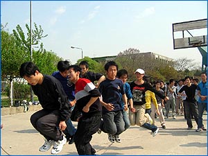 首先开始的是十米慢车,选手们东扭西拐的姿势给大家带来了无限乐趣,就在我们为他们捏一把汗时,其他比赛也相继开始了。那边,篮球三分接力进行得如火如荼,参赛选手一个原地跳跃,将球抛向半空,划过一条优美的弧线,众人的目光都汇集在这个球上,一声响,进了!还有那边,转球赛跑、三人交叉跳绳等让人目不暇接。下午的比赛同样精彩,谁能摸到两倍于自己的高度?很少有人做到,而他们则是其中的佼佼者,摸高大赛中他们一展风采,众人的目光随着他们有力的弹跳来回摇摆,呼声也随之时高时低,身后的剥瓜子等其他项目同样令人回味无穷。