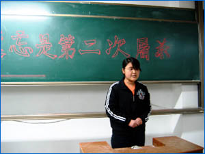 12月15日晚7:00,由机械工程学院雷锋突击队主办的以“遗忘是第二次屠杀”为主题的演讲比赛决赛如期举行。来自我院大一的13名选手在机械馆J3教室狭路相逢,针对日本的南京大屠杀及其扭曲历史的丑恶行径等问题进行了严厉的批判。为保证比赛的公正性,07级辅导员俞滨老师、张暾老师,研究生会代表赵飞老师及一些学生代表作为评委出席了此次演讲活动。