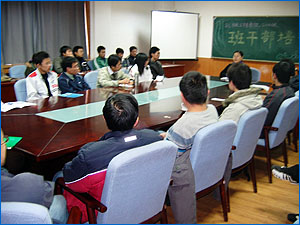 班级干部是高校学生干部的重要组成部分,也是“学生日常监控网”的重要节点。强有力的学生干部队伍,是优良班风学风形成的重要保障,是辅导员工作的得力助手,是消除学生内部安全隐患的主力军。机械工程学院06级年级组特别重视班级干部的素质培养以及团队精神的培养。2007年12月4日,在06级各班班委换届完成之际,年级组及时开展了班级干部岗位职责培训活动。