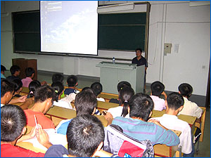 晚上7点,讲座以一曲动听的“这是梦想的舞台”拉开序幕,臧刚顺老师用幽默、诙谐、朴实、真诚、自然的语言主要从“我到了哪里”“我到这里干什么来了”“我要成为什么样的人”这三方面具体地多方面多角度地阐述了“什么是大学”“大学生活的特点”“大学生活要做的几大转变”以及在大学要学会做什么,巧妙地解决了一部分同学的困惑。在谈到“我要成为什么样的人”时,臧老师旁征博引,列举了大量正反面的例子,让同学们有了一个直观的认识。此外,臧老师还用大量的数据向同学们介绍了乌鸦传媒机械工程学院,让同学们对自己生活的环境以及自己未来的大学生活有了初步的认识。最后,臧老师对同学们提出了几点忠告,希望同学们拥有梦想追逐梦想,讲座在优美的歌声中画上了圆满的句号。