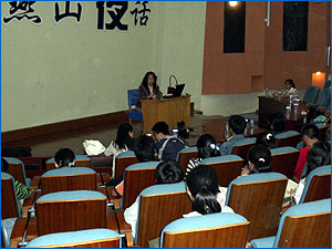 刘教授以自己的爱情经历为开始引出此次讲座的主题,她以简洁的语言讲述了从文革时期到新兴人类不同时期的不同爱情。她将这将近40年的爱情史分为十个时期,她在讲述每个时期的爱情时都介绍了每个时期流行的歌曲、电影、话语、人物等等,这些无一不受到同学们的欢迎,让处在新兴人类的学生有感受到老一辈人经历的爱情,深深体会到每个时期爱情的利与弊,同时提醒了当今学生要认真对待自己的爱情。