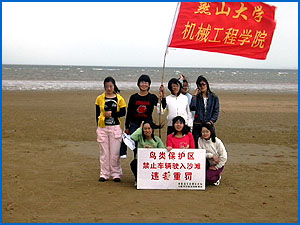 下午1︰30,06成型2班全体同学从图书馆门前出发,经滨海大道,鸽赤路,海坡路,东、西海滩路,剑秋路,到达联峰山。途经中国野生动物保护协会秦皇岛野生动物救护中心,鸽子窝公园,碧螺塔,老虎石公园。