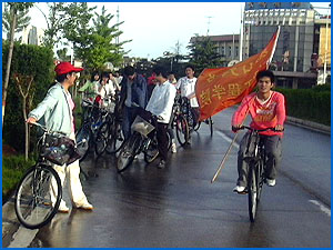 17日下午阵雨不断,但并没有丝毫影响同学门的热情。大家一路上不忘活动的宗旨,积极主动拣拾沿途的垃圾,倡导保护环境卫生,并且热情帮助遇到困难的同学。在活动中充分体现了同学们的团队精神。